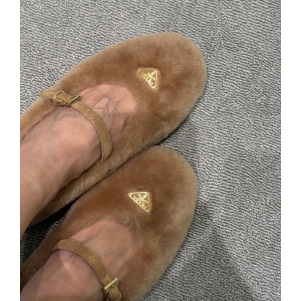 PRADA 시어링 메리제인 플랫